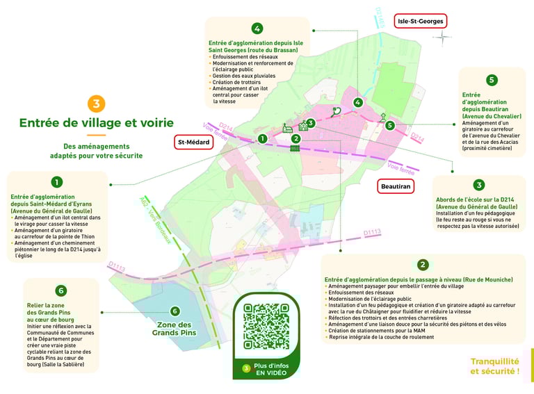 Repenser les entrées du village pour améliorer la sécurité, la circulation et valoriser l’image de la commune.