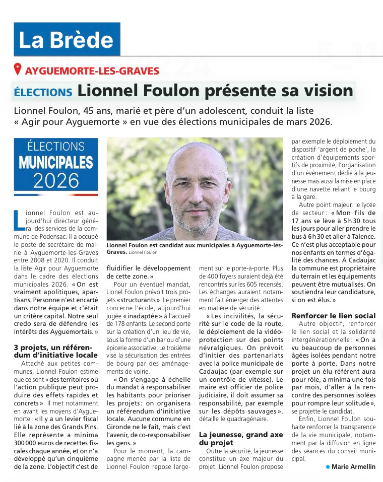 avec et pour les habitants d’Ayguemorte-les-Graves, porté par Lionnel Foulon.