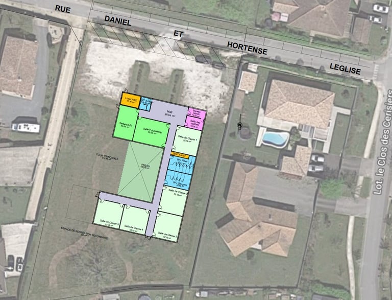 Nous proposons l’aménagement d’un groupe scolaire primaire sur le terrain dédié Rue Daniel et Hortense LEGLISE afin de limiter les contraintes d’espaces pour les enfants et la gêne au voisinage. Le groupe primaire restera sur le site actuel. Ainsi, les locaux vacants réservés aux classes primaires sur le site actuel seront transformés en réfectoire communs pour les primaires et les maternelles.