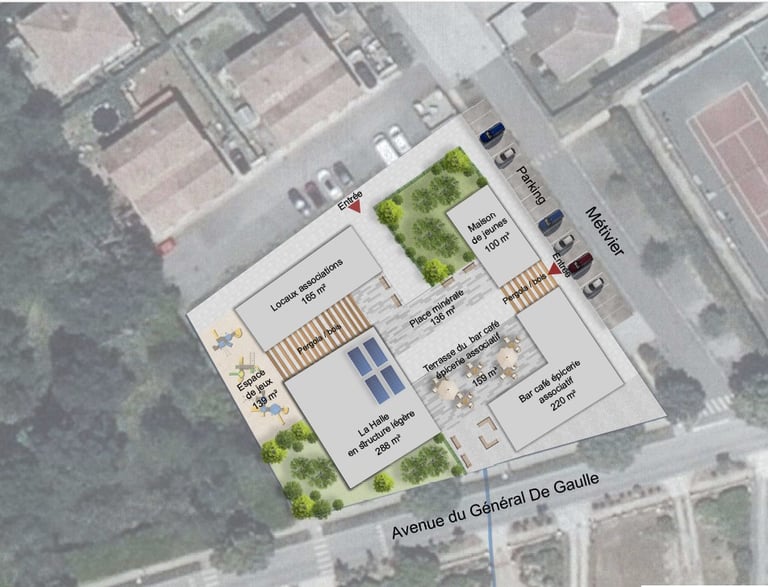 Le projet serait implanté et construit sur le terrain appartenant à la municipalité à proximité des courts de tennis en plein cœur de bourg. Ce lieu de vie sera animé par une association dédiée. Il s’accompagnera de la construction de locaux mis à la disposition de la vie associative et de la jeunesse.